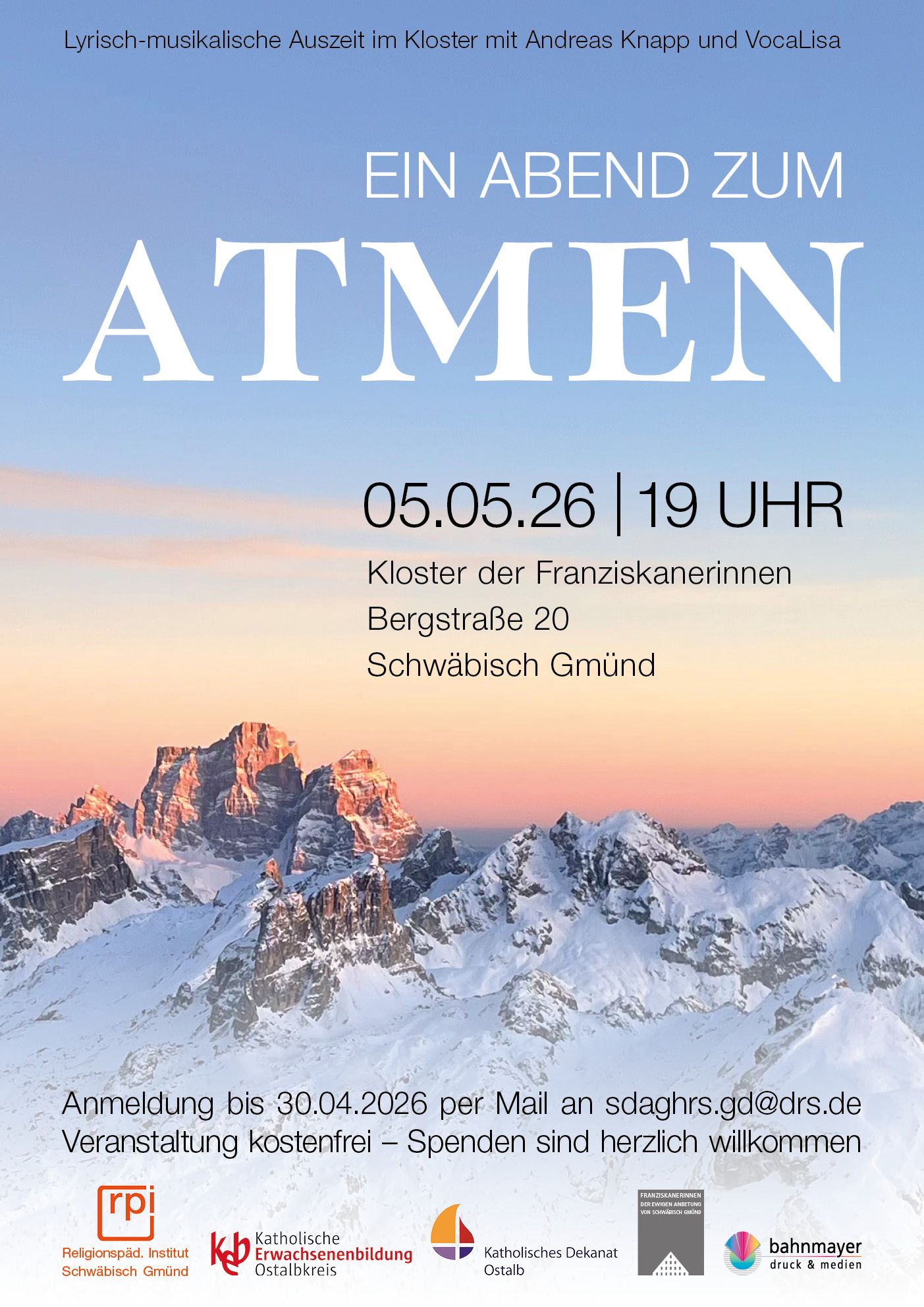 Lyrisch-musikalische Auszeit im Kloster mit Andreas Knapp und VocaLisa