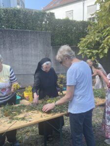 Die zu diesem Fest angebotenen, duftenden Kräuterbüschel fanden reißend Absatz. Der Erlös durch die verkauften Kräuterbüschel von 465,50 EUR ging dieses Jahr an den Verein „Togo e.V.“ aus Waldstetten. Unsere Mitarbeitenden von Hauswirtschaft, Küche, Haustechnik und Verwaltung gaben zu diesem Fest wieder ihr Bestes.