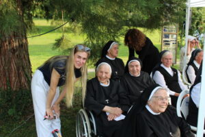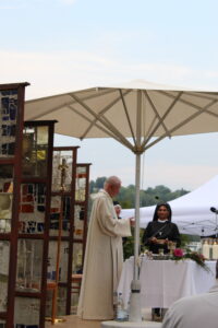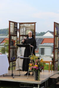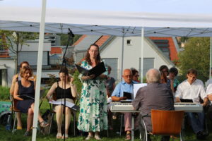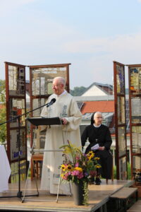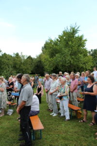 Bei strahlendem Sonnenschein feierte eine große Gottesdienstgemeinde mit uns im Klostergarten den Festgottesdienst von Mariä Himmelfahrt. Die ansprechend gestaltete Liturgie von Herrn Pfarrer Kloker wurde umrahmt von Herrn Walter Beck und seinem Chor Collegium Vokale. Im Anschluss ergaben sich, bei einer kleinen Stärkung im Schatten unter den Bäumen, rege Gespräche.