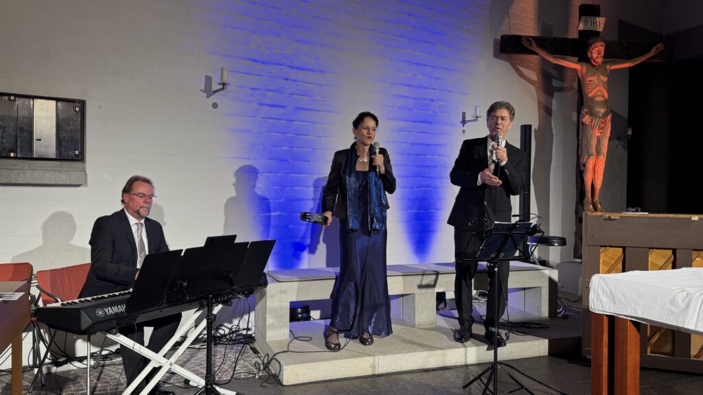 Das von der AGNES PHILIPPINE WALTER STIFTUNG veranstaltete Konzert war überaus gut besucht. Etwa 200 Besucherinnen und Besucher drängten sich in der Klosterkirche. Es war ein Genuss, Edith Hartmann mit ihrer hellen Sopranstimme und ihrem Ehemann Bernhard mit seinem ausdrucksvollen Bariton zuzuhören. Meisterlich begleitet wurden die beiden von Jürgen Zimmermann am Klavier und am E-Piano.