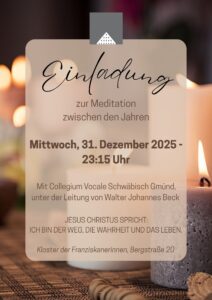 Wir Franziskanerinnen der ewigen Anbetung, Schwäbisch Gmünd, erklären uns solidarisch mit der ukrainischen Bevölkerung und ihrer demokratisch gewählten Regierung. Wir beten um Beendigung des Krieges und besonders für die verängstigten, Not leidenden Frauen, Kinder und alten Menschen.