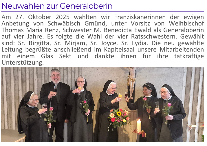 Generaloberin: Schwester M. Regina Waibel, Generalvikarin: