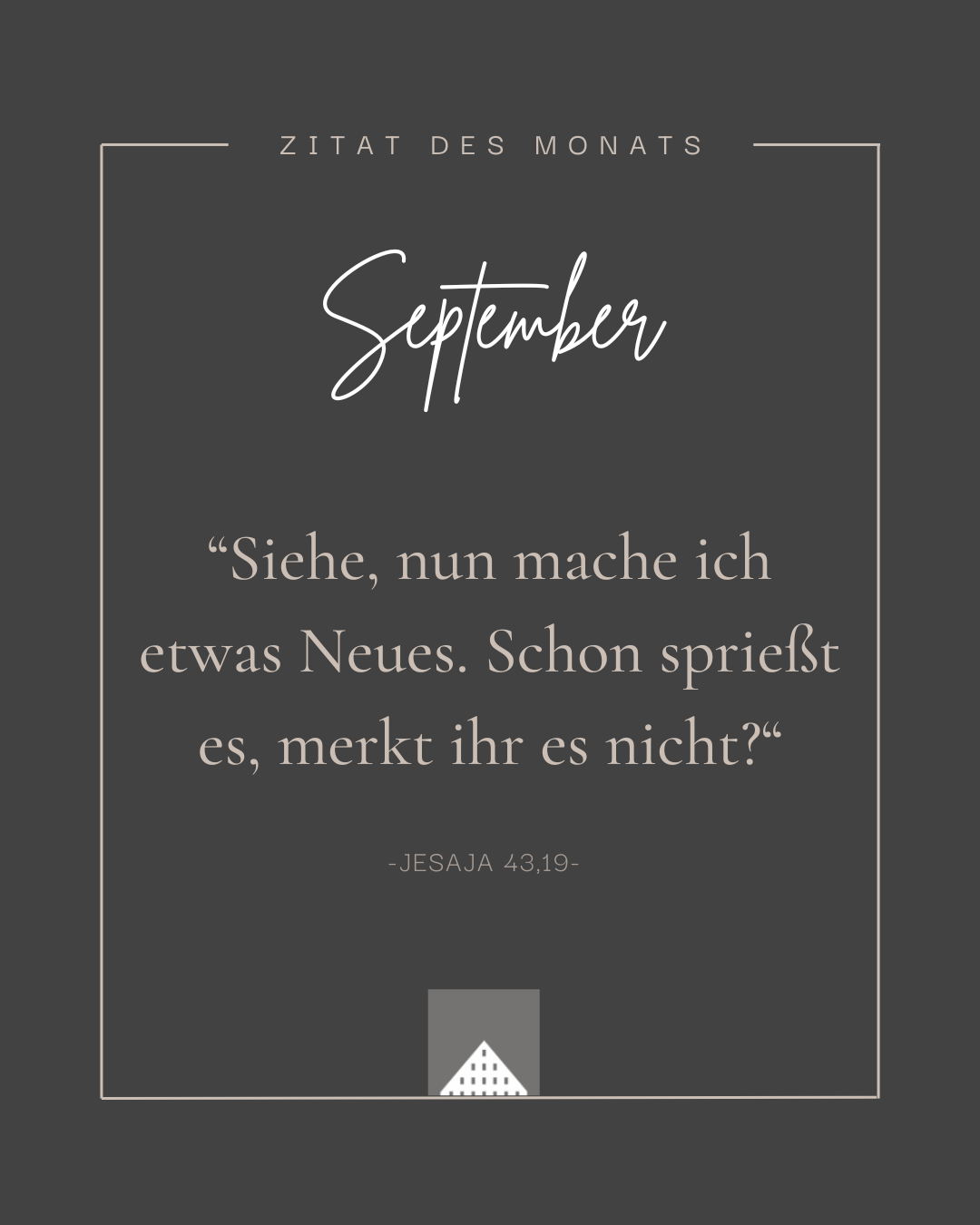 Dieses Bibelzitat erinnert uns passend zum September daran, dass Gott immer wieder Neues schafft – manchmal leise und sanft wie die ersten Blätter, die sich verfärben, manchmal kraftvoll und überraschend.